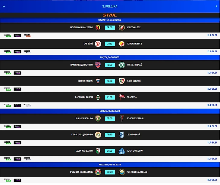 Тур открывался матчем новичков лиги в Гливице, где своих соперников принимает хожувский «Рух». В гости к «синим» приехал «ЛКС». Обе команды стартовали в чемпионате с поражений, кому-то в пятницу предстояло набрать первые очки в сезоне.