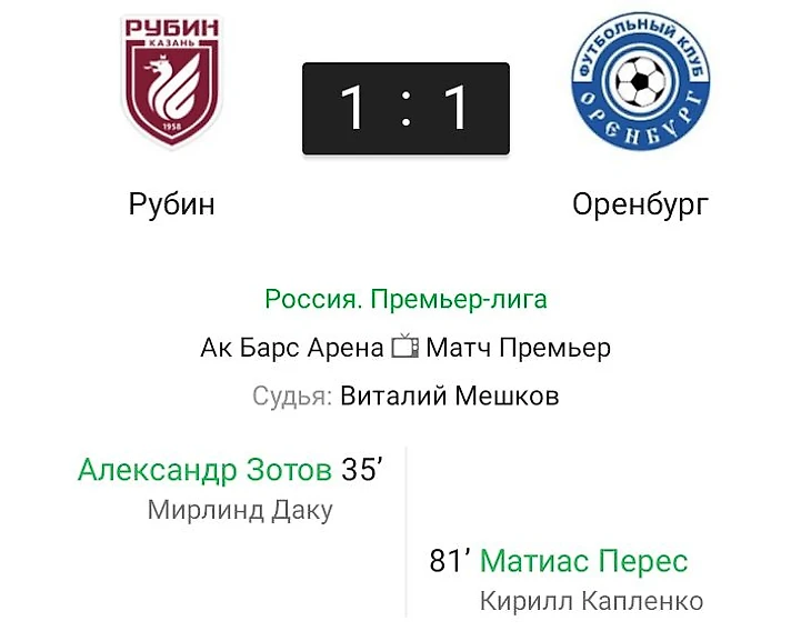 "Оренбург" уверенно переиграл "Рубин" по XG - 1.79-0.69.