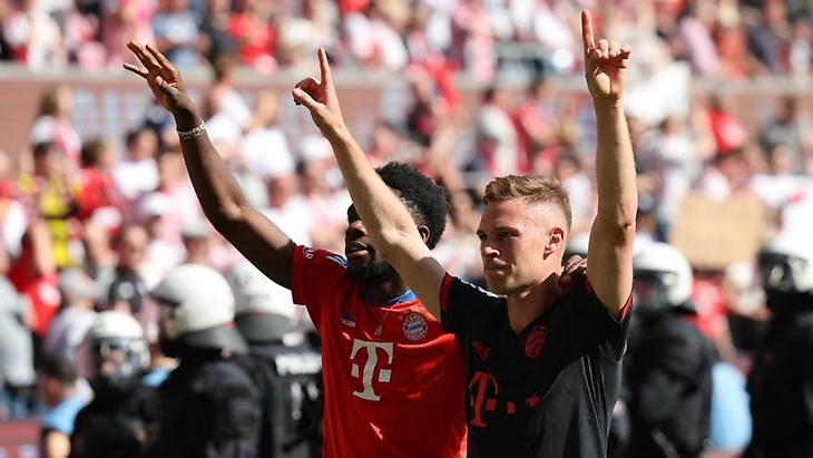 Альфонсо Дэвис и Джошуа Киммих на праздновании финальной Бундеслиги