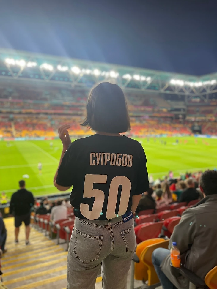 Марина ради этого пришла в футболке вратаря «СКА-Хабаровска» Владимира Сугробова.