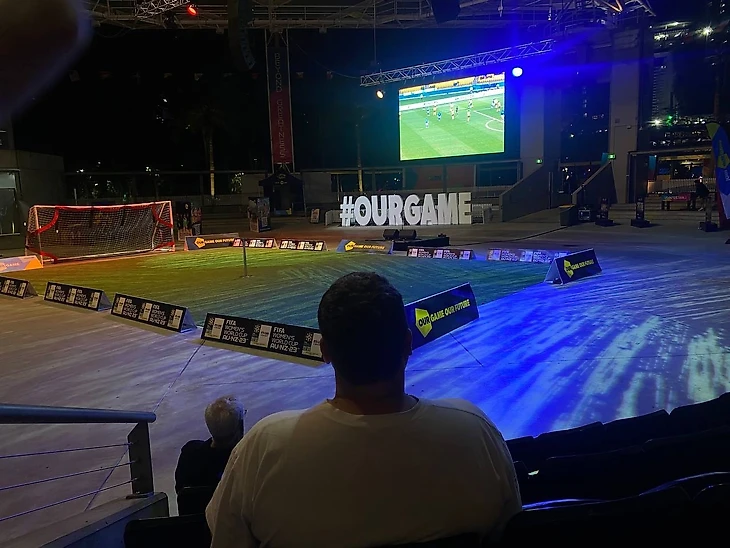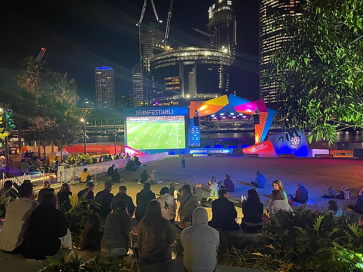 Фан-зона в Брисбене разделена на две части: в одной стоит экран прямо на берегу реки, а в другой трибуны на 1500 мест.