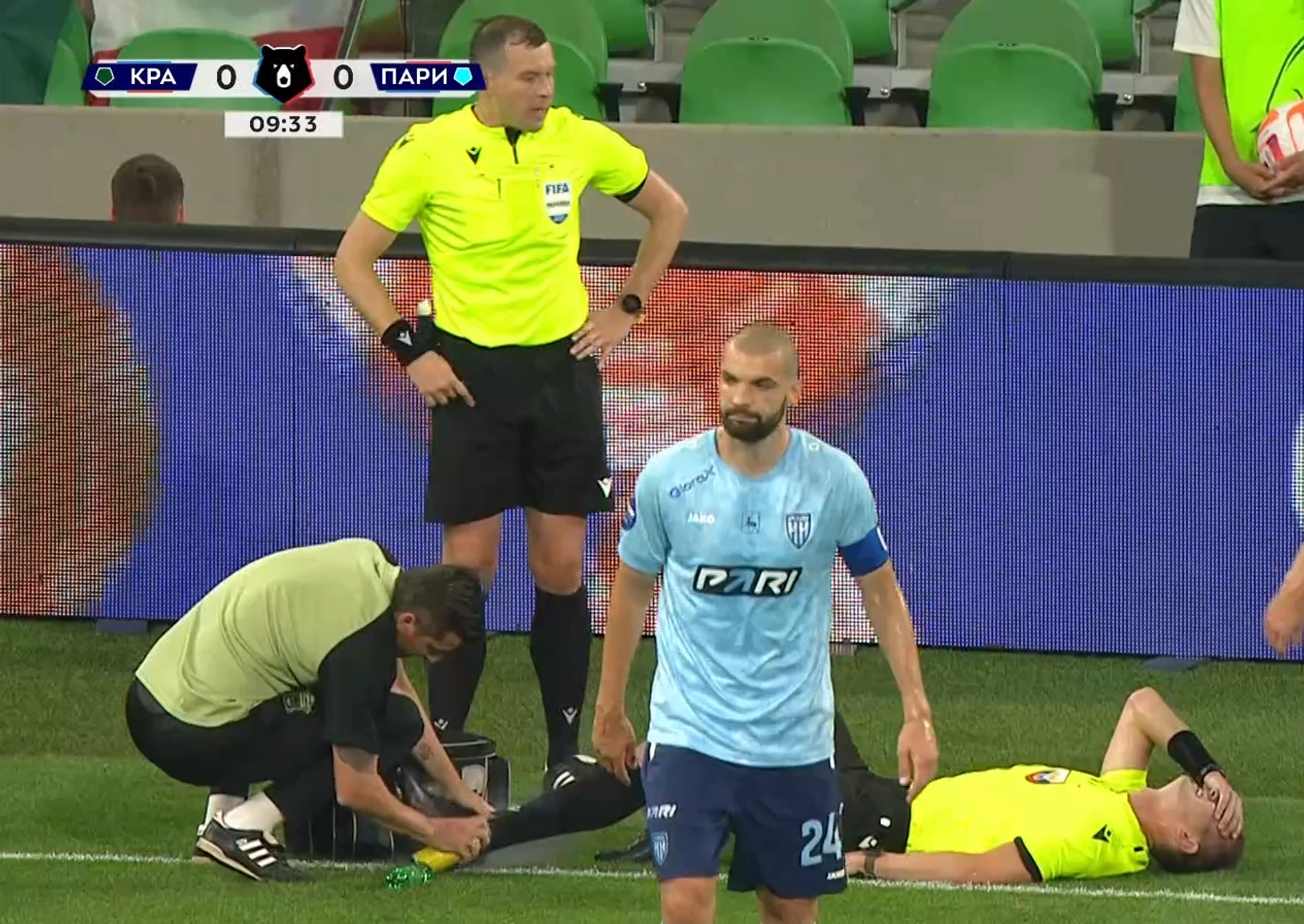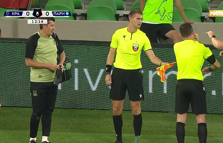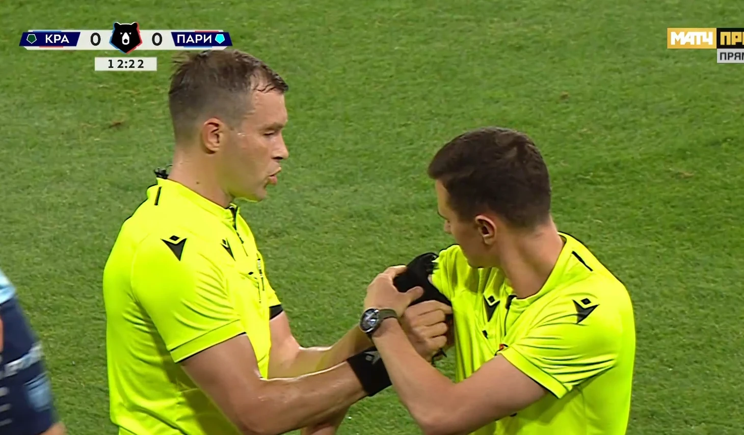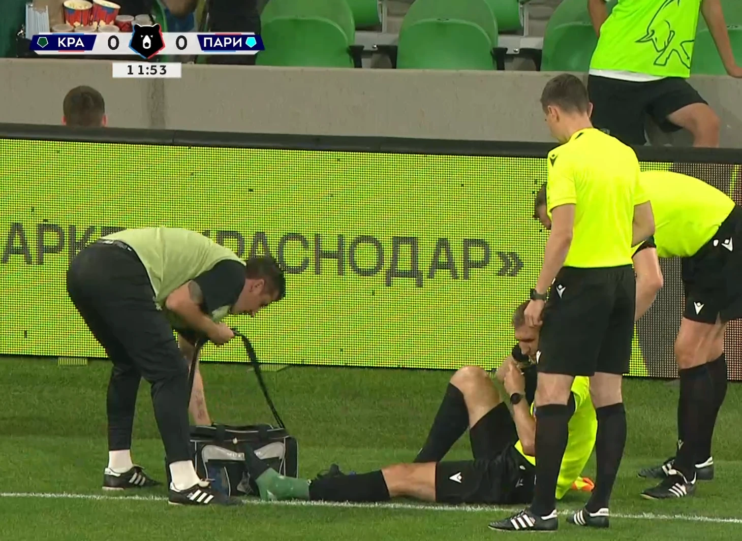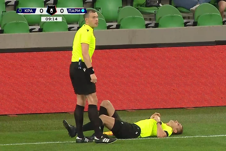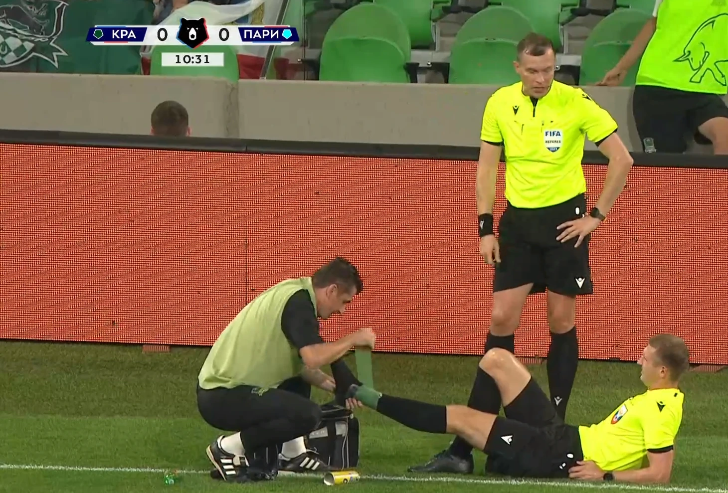 Лайнсмен Роман Усачев травмировал колено и был заменен резервным арбитром Артемом Чистяковым.