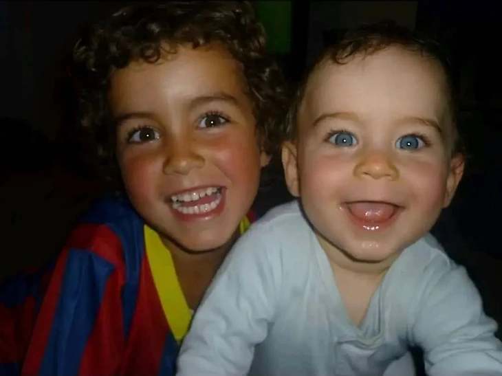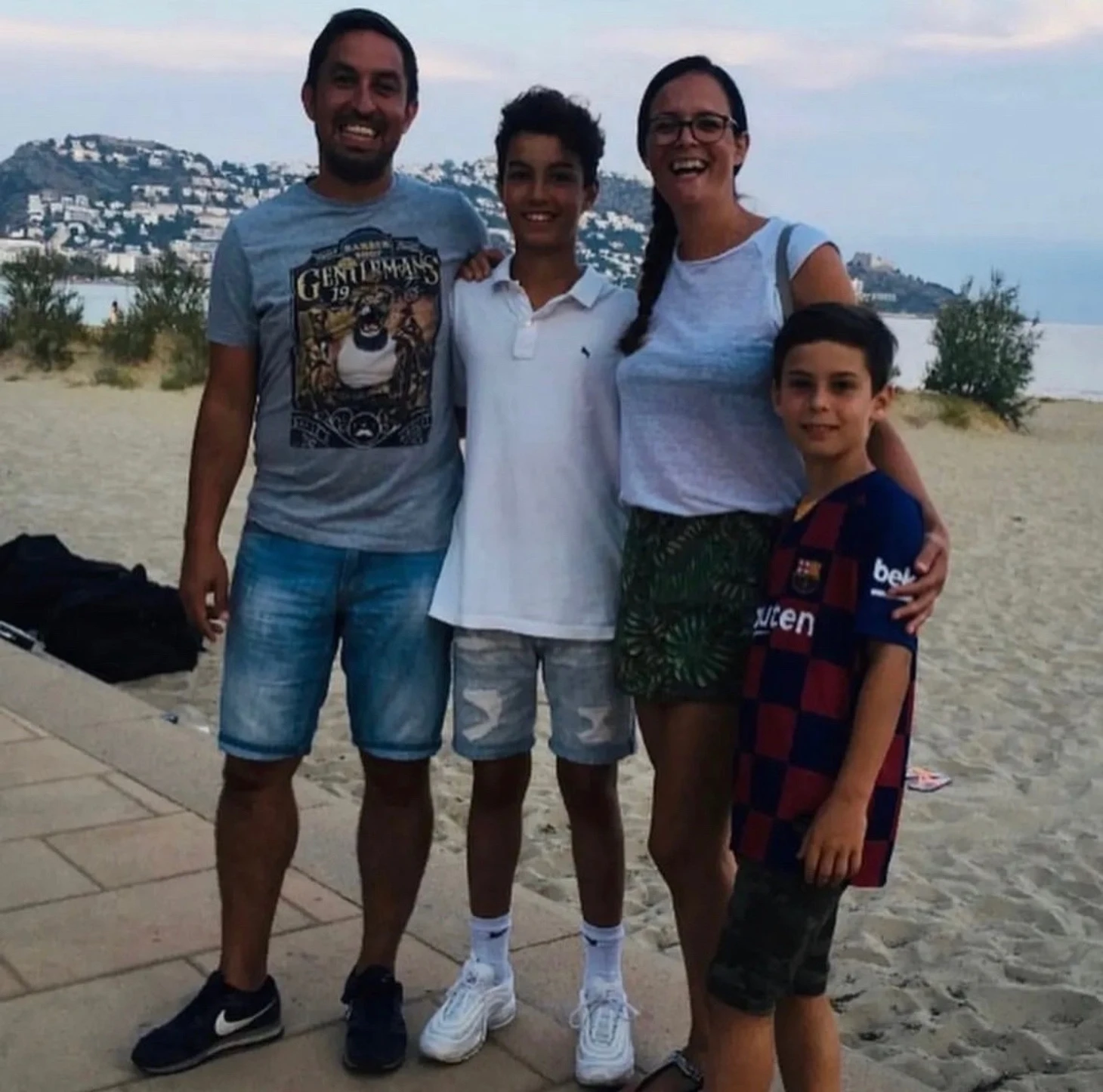 А вот Ноа вместе с семьей, теперь уже младший брат футболиста стоит в футболке каталонцев.