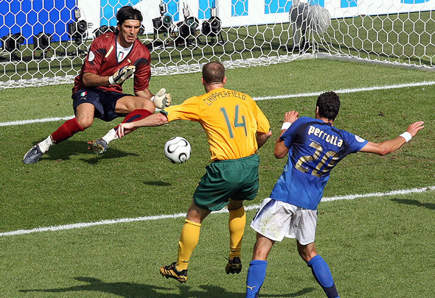 Кризисный момент в матче наступил не на 50-й минуте, когда Матерацци оставил своих в меньшинстве. Он случился еще в первом тайме, когда Чипперфельд влетел в штрафную на удобный отскок и с лету расстрелял ворота с 11 метров. Буффон привычно оказался там, где и должен был, упростив до невзрачного сэйва потенциально голевой выстрел.