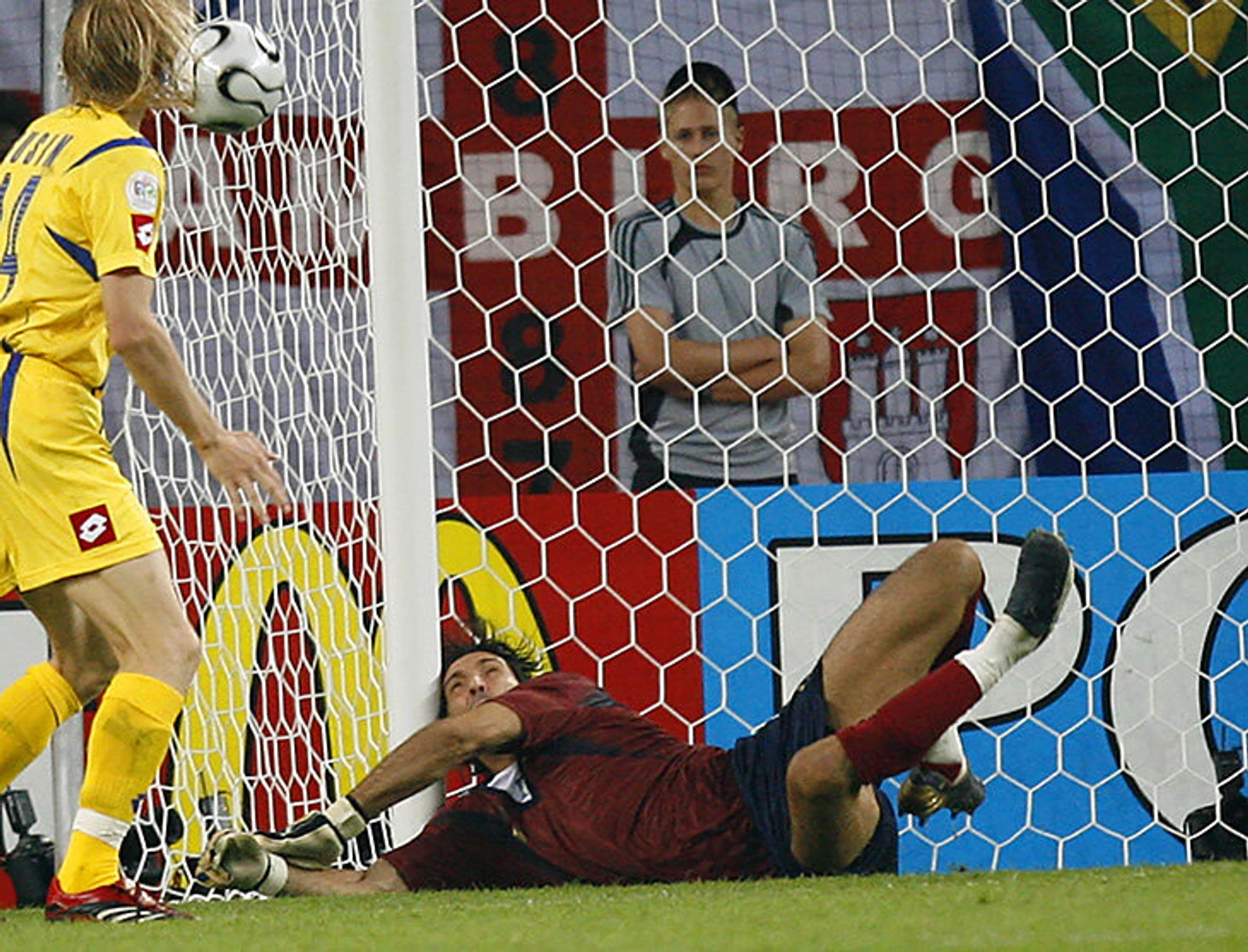 Полчаса спустя Буффон взял реванш у Бароне, а на следующий день занялся украинцами. Итальянцы разгромили соперника, но еще до того, как счет стал комфортным, баланс мог качнуться в другую сторону. На 50-й минуте Гусин остался один на краю вратарской и без помех пробил в пустой угол – Буффон неожиданно материализовался и перевел мяч в штангу (попутно протаранив ее головой). Почти сразу украинцы перегрузили центр и вывели свободного Гусева на удар с 7 метров. Буффон потащил, а с добиванием помог защитник.