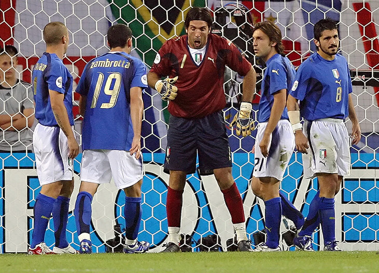 Зизу ушел, итальянцы продержались до послематчевых пенальти и без особенных подвигов победили – хватило удара Трезеге в перекладину. Буффон закончил турнир с 5 сухими матчами из 7 (рекорд чемпионатов мира), 0 пропущенных с игры, 30 сэйвами и 97% отраженных ударов. Подняв Кубок, он подумал: «Если я умру сегодня, умру счастливым».