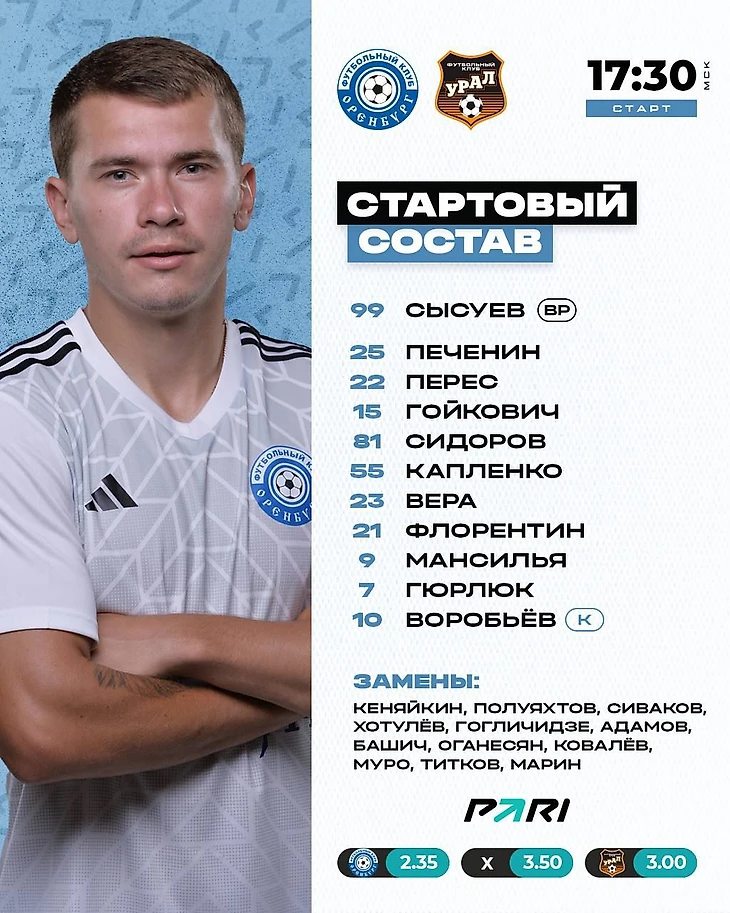 У "Урала" Железнов в основе вместо Юшина. В остальном все стандартно.