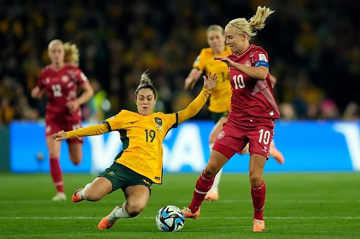 Это была лишь вторая встреча на Олимпийском стадионе в Сиднее. Матч прошёл в довольно спокойном темпе. На 29-ой минуте Мэри Фаулер отдала классную передачу на Кейтлин Форд, которая открыла счёт. Вообще, много опасных моментов исходило как раз из левого фланга, где играла Форд. Много моментов было и у лидера европейской команды, Пернилле Хардер, но угроза воротам МакКензи Арнолд была незначительной. На 70-ой минуте Фаулер передала мяч Эмили ван Эгмонд, которая, находясь на линии вратарской, не пожадничала и сделала передачу на Хейли Расо. Расо забила свой третий гол на турнире. Через 10 минут на поле вышла Сэм Керр. Она пропустила весь групповой этап из-за травмы. Сборная Австралии сыграет в следующем раунде с победителем в матче Франция - Марокко.