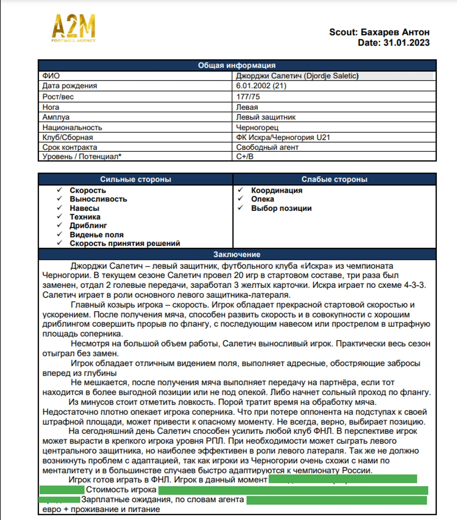 Салетича наше агентство предлагало зимой паре клубов из РФ. По правилам УЕФА за молодого игрока необходимо платить компенсацию за воспитание игрока. У меня сложились неплохие отношения с представителем игрока и он смог согласовать довольно хорошую скидку на эту компенсацию.