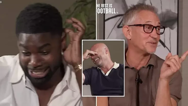 Гари Линекер внимательно слушал своего коллегу, а затем отлично подколол его, что вызвало бурный смех в студии.