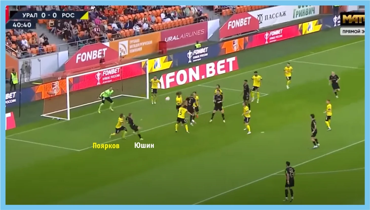 Всё бы «Ростову» и ничего, но «Урал» забил с углового. Поярков, стоя на месте, проиграл борьбу Юшину, и тот забил ударом слёта.
