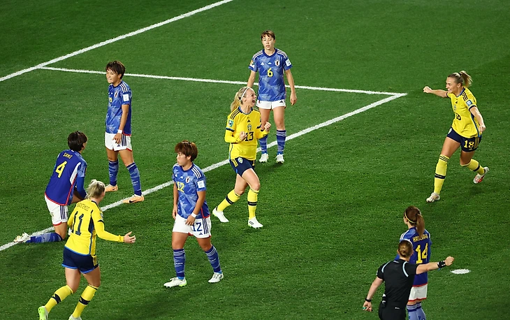 Швеция очень хорошо смотрелась в первом тайме, так же, как и Испания, она не дала сопернику нанести ни одного удара. Забросами за спину шведки пытались взломать оборону японок. Один из таких забросов чуть не привёл к голу Стины Блакстениус на 26-ой минуте. На 32-ой Аманда Илестедт забила во время стандарта, это её четвёртый гол на мундиале. Через 10 минут Косовара Асллани чуть не удвоила преимущество, но мяч после её классного удара попал в штангу. В начале второго тайма Фука Нагано сыграла рукой в своей штрафной, за что Штаубли назначила пенальти. Филиппа Ангелдаль его реализовала. И вроде бы на этом было всё, ведь сборная из Европы контролировала мяч, а их соперник ничего не мог сделать, но внезапно азиатская команда включилась в игру. Шведки рано расслабились, но и заменами Футоси Икеда смог освежить матч. На 74-ой минуте только вышедшая на замену Маделин Яноги сбила в штрафной другую запасную, Рико Уеки, и Эстер Штаубли указала на «точку». Уеки не забила с 11-метрового, попав в перекладину (причём, она сразу после этого ещё и коснулась мяча, чего ей делать было нельзя). И это было лишь начало: в оставшееся время Япония давила, заставив соперника сесть в оборону и пытаясь забить хоть один гол. На 87-ой случилось безумие: Аоба Фудзино попала в каркас ворот со штрафного, мяч после попадания в перекладину попал в Зечиру Мушович, а от её головы – в штангу, после чего снаряд покатился вдоль ворот. Японки сохранили мяч, и в этой же атаке запасная Хонока Хаяси отыграла один мяч после ошибки Магдалены Эрикссон при выносе. За 10 минут добавленного времени никому не удалось забить. Швеция выходит в полуфинал и сыграет с Испанией. 20 августа определится новый чемпион мира, так как оставшаяся сборная с таким титулом покинула турнир.