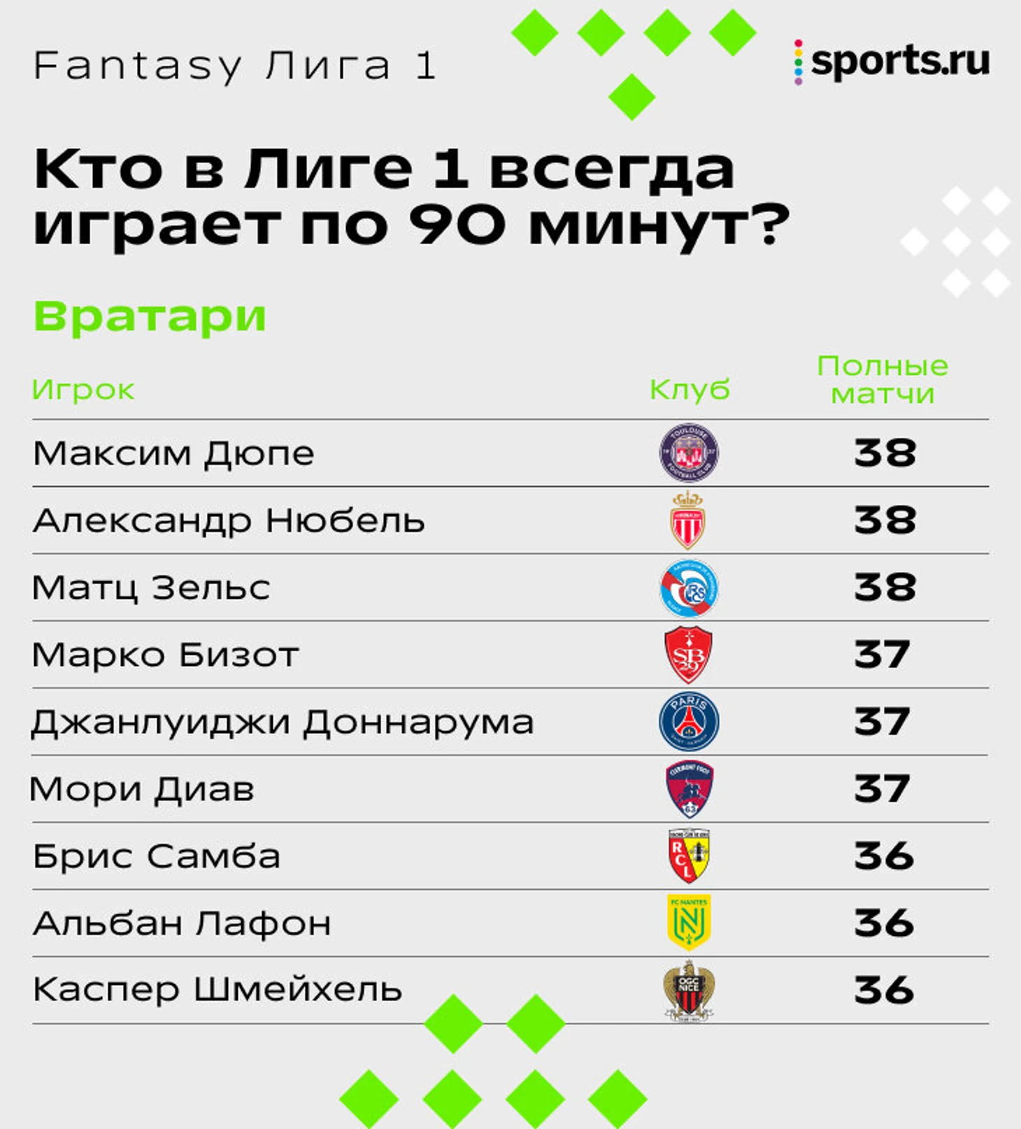 • Джанлуиджи Доннарума был в 10 минутах от топа: его заменили на 80-й минуте последнего тура – дали сыграть Александру Летелье. Это уже традиция: в сезоне-2021/22 Летелье тоже сыграл 10 минут.