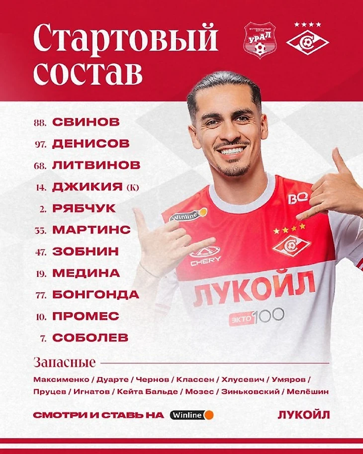 В стартовый состав «Спартака» на эту игру впервые попали сразу все три новичка, ставших красно-белыми в летнее трансферное окно: молдавский левый защитник Олег Рябчук, парагвайский экс-вингер ЦСКА Хесус Медина и его коллега по позиции – бельгийский конголезец Тео Бонгонда, пришедший в «Спартак» из испанского «Кадиса». Также стоит отметить дебют 22-летнего вратаря Ильи Свинова в РПЛ.