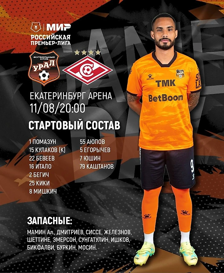Не обошлось без тройки новичков и в старте «Урала»: бразильский центральный защитник Итало, перешедший на правах аренды из португальской «Санта-Клары», левый защитник из Португалии – Кики (прежний клуб – «Визела»), а также опорник из «Оренбурга» Тимур Аюпов.