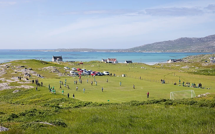 Чтобы увидеть оазис, надо постараться. Паром до Внешних Гебридских островов могут отменить из-за непогоды, а если вы и доплыли, матч может не состояться по многим причинам: сломался паром между островами, залило или заморозило газон, ремонтируются единственные раздевалки, одна из команд просто не смогла собрать минимальное количество игроков..