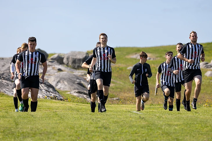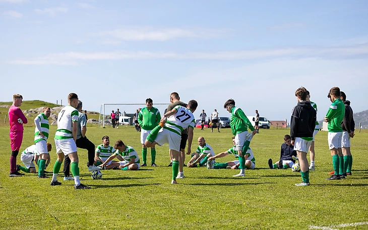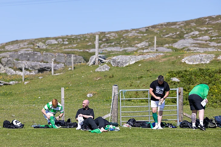 Хозяева пришли на разминку. Гости тоже приехали (все-таки именно приехали — с 2001 года Эрискей и Саут-Уист соединяет мост-дамба).