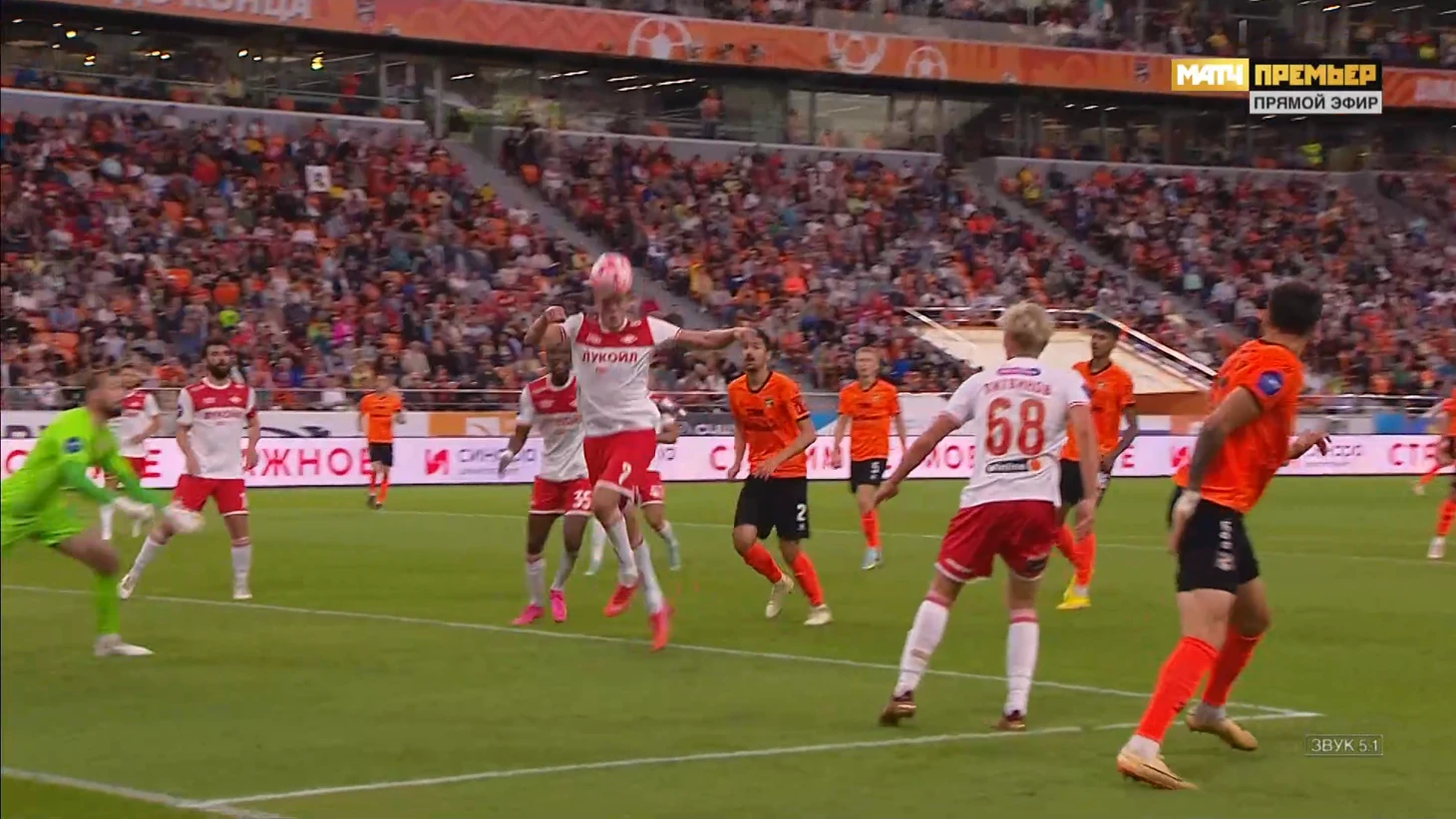В этом моменте не понял решение Литвинова. Выпрыгивай и выбивай мяч, а если имеет место толчок со стороны игрока "Урала", то при прыжке он будет настолько явным, что судья обязательно зафиксирует. В любом случае старайся играть в мяч, а не уклоняйся от него.