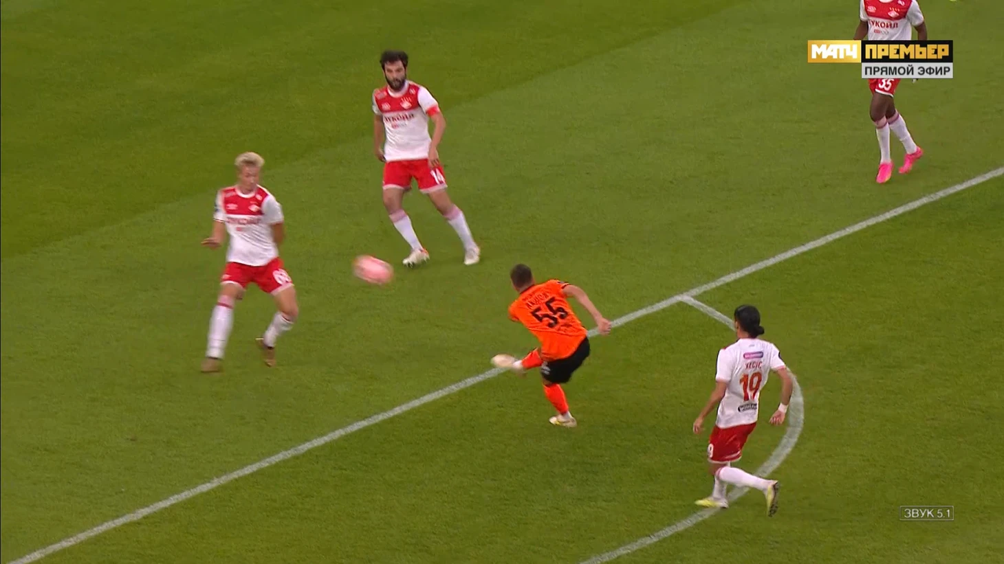 Второй момент случился после передачи верхом в штрафную Свинова. Как видим мяч летит на достаточной высоте, чтобы Руслан смог сыграть его головой, но вместо этого он присаживается и не вступает в борьбу за мяч. Как итог мяч доставляется в опасную зону,