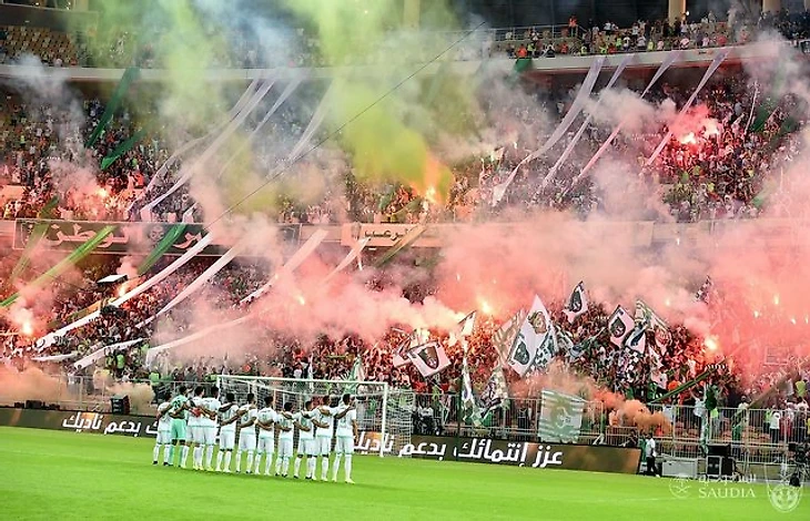 Один из самых титулованных клубов страны спустя год «чистки» первым дивизионом вернулся в элиту и сразу показал намерения бороться за чемпионство, подписав несколько известных игроков. Был основан 4 молодыми людьми – братьями Шамса и Баттерджи – учащимися старейшей в Джидде школы «Аль-Фалах». Название у клуба простое, но масштабное и запоминающееся. С учётом наличия в полном наименовании слова «саудовский» (saudi) «Аль-Ахли Сауди» – «Национальный саудовский футбольный клуб».