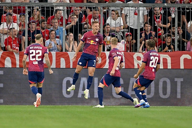 За минуту до окончания основного времени тайма все тот же Дани Ольмо развернул своего бывшего сокомандника Лаймера и малоподвижного в тот вечер Де Лигта в штрафной получив передачу от Вернера и сохранив равновесие точно пробил — 2-0. Максимально сложный для «Баварии» тайм. Ольмо главный герой тайма. На второй тайм футболисты «Лейпцига» вышли явно удерживать позиции и снизить темп хозяев. Мюнхенцы атаковали ровно так же безуспешно, как и в первом тайме, явно ожидая выхода Харри Кейна, которого камеры трансляции бесконечно ловили в разных ракурсах.