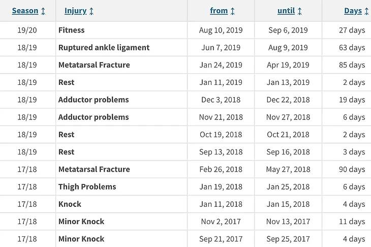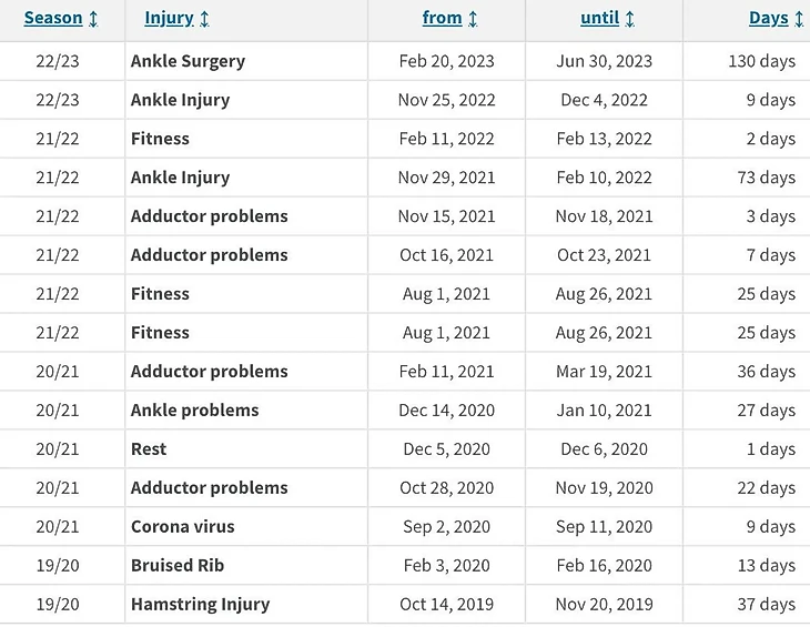 За шесть лет пребывания в Париже Неймар ни разу не сыграл более 22 матчей за сезон, его постоянно мучили травмы.
