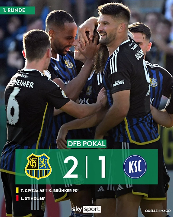 «Саарбрюккен» оставил за бортом турнира «Карлсруэ», ответив на гол Штиндля мячами Цивейи и Брункера.