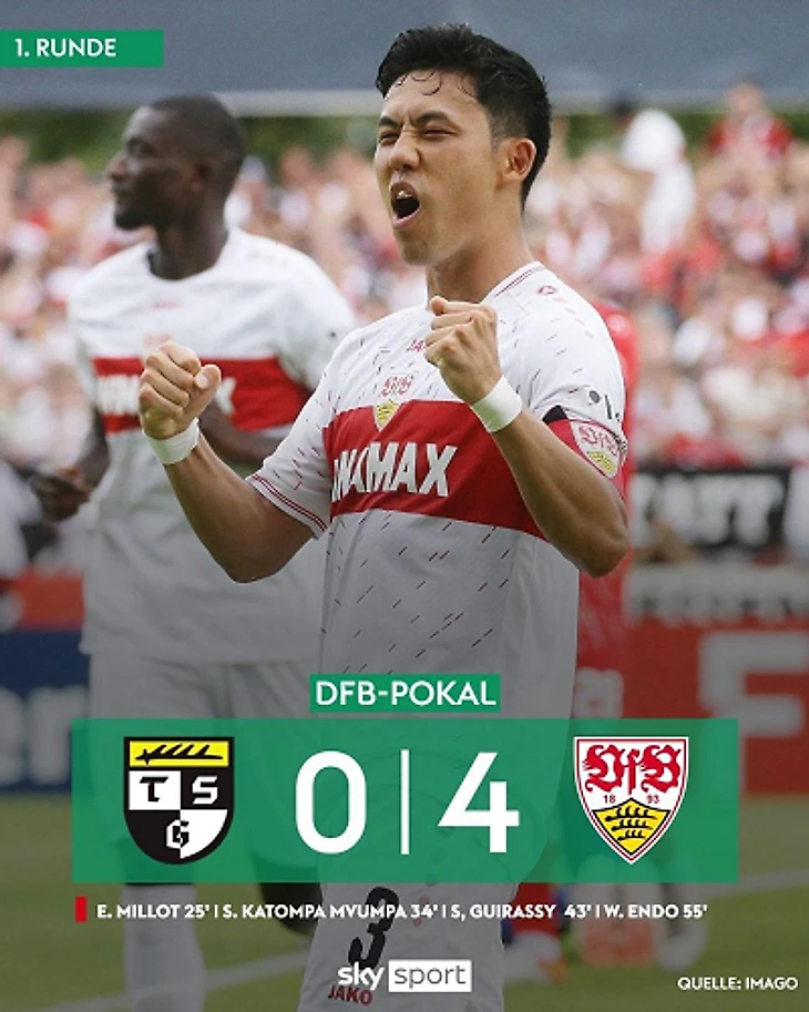 Серу добавил к своему голу ассист. На 55-й минуте Эндо прорвался в штрафную, сыграл с французом в стеночку и пробил. В оставшееся время «Балинген» не смог поправить свое положение. «Штутгарт» забивает сопернику четыре мяча и двигается дальше.