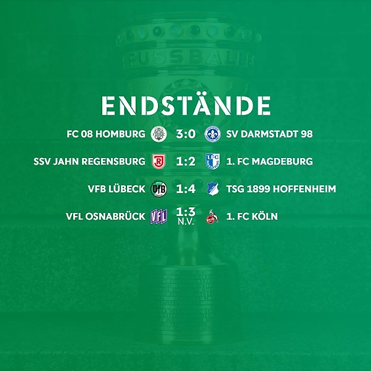 Кубок Германии стартовал в пятницу четырьмя матчами.