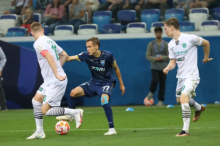 Про самоотверженную игру Александрова за двоих мы уже говорили, но и на противоположном фланге его коллега творил почти чудо. «Ахмат» все свои попытки у чужих ворот строили через заброс на их «большого» Каноте. Он на полторы головы выше Масоэро, но тот прекрасно справился с задачей, не проиграв визави ни ногами, ни, самое удивительное, в воздухе. Явно пытаясь не только помочь команде, но и показать тренеру, что тот зря его держит в запасе. А руководили этой обороной Нигматуллин и Гоцук. Первый голосом подсказывал, когда у куда надо выбегать (очень нахватало таких выкриков со «Спартаком», когда вжимались семь человек почти в ворота). Капитан безупречно снимал верховые мячи и спокойно подстраховывал Масоэро и Александрова в редкие моменты их проигрышей оппонентам.