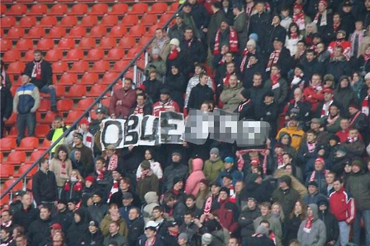 Однажды болельщики «Спартака» пронесли на матч со «Спартаком» из Нальчика буквы, из которых складывалось слово «Бышовец». Но если буквы переставить местами (а одну – перевернуть), то получится кое-что другое.