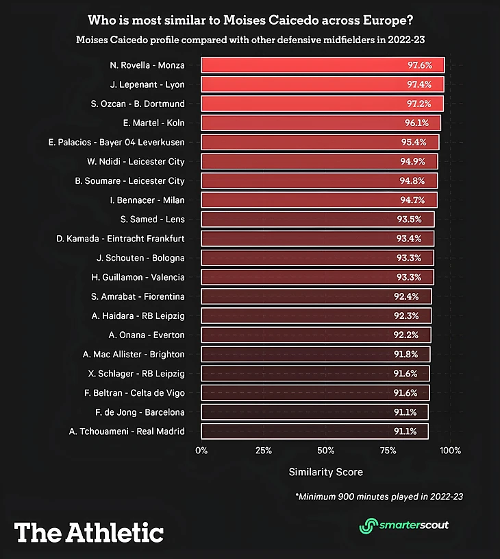 К счастью, «Ливерпуль» продемонстрировал свою работу в преследовании Кайседо как образцового опорного полузащитника, которого они жаждут, поэтому давайте раскроем его черты, чтобы увидеть, какие игроки в прошлом сезоне были похожи на эквадорца.