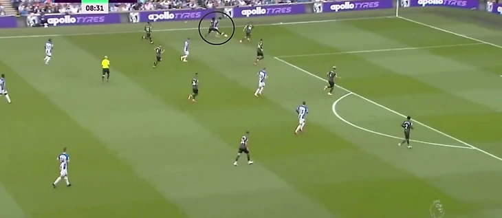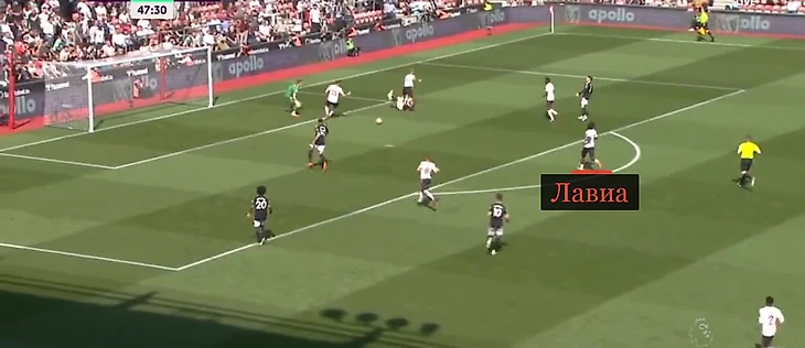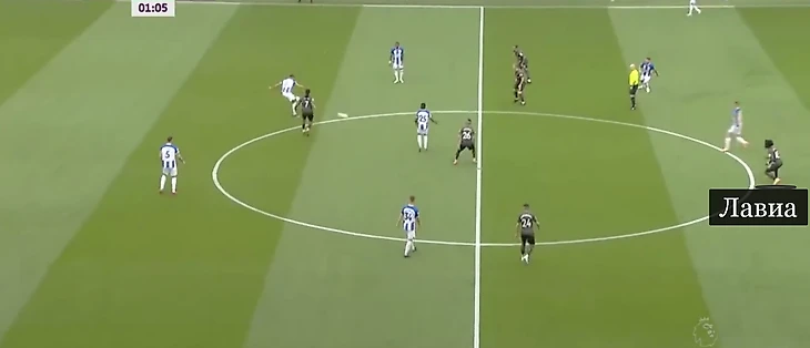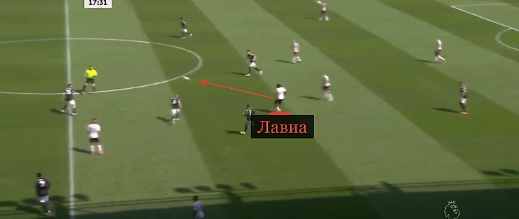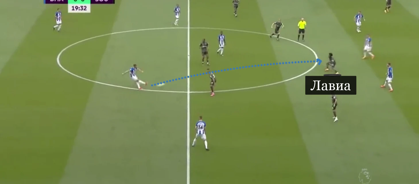 Аналогичная история – из матча с «Брайтоном». Лавиа как опорник должен был быстрее опуститься в штрафную – шел слишком долго, что привело к удару из правого полуфланга.