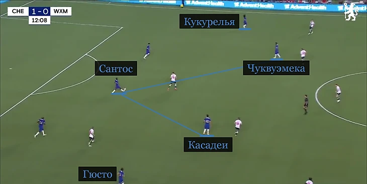 Подставьте на место Андрея Сантоса – Лавию, Карни Чуквуэмеки – Кайседо, а Чезаре Касадеи – Энцо. Треугольник сложится.