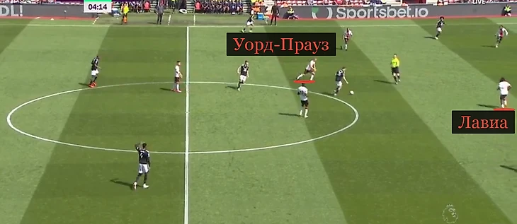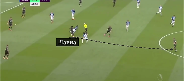Разбивка по ролям перенеслась и в матч против «Брайтона» – только «Саутгемптон» пересел на 4-1-4-1, где Лавиа исполнял чистого опорника.