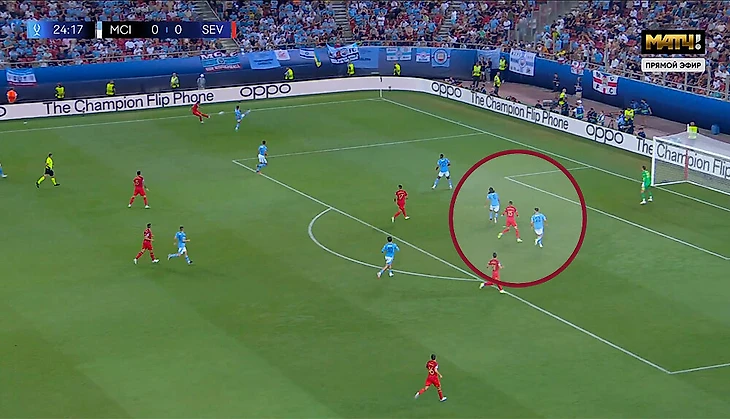 Это был не первый подход испанцев к воротам «Сити», но первый настоящий момент – причем созданный из ничего, просто на мастерстве подающего и центрфорварда.