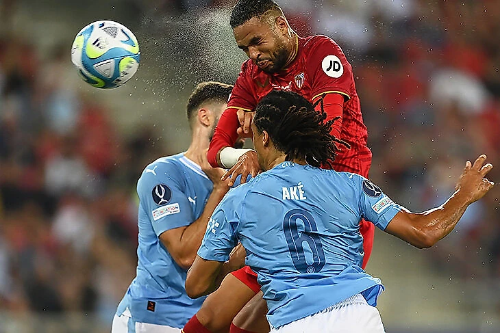 Мы еще с чемпионата мира (а многие и раньше) помним, как хорош наверху Юссеф Эн-Несири. Он голом головой выбил сборную Португалии в четвертьфинале. Теперь воспользовался шикарной подачей Маркоса Акуньи, перепрыгнул обоих центральных защиников и вонзил в Суперкубке УЕФА!