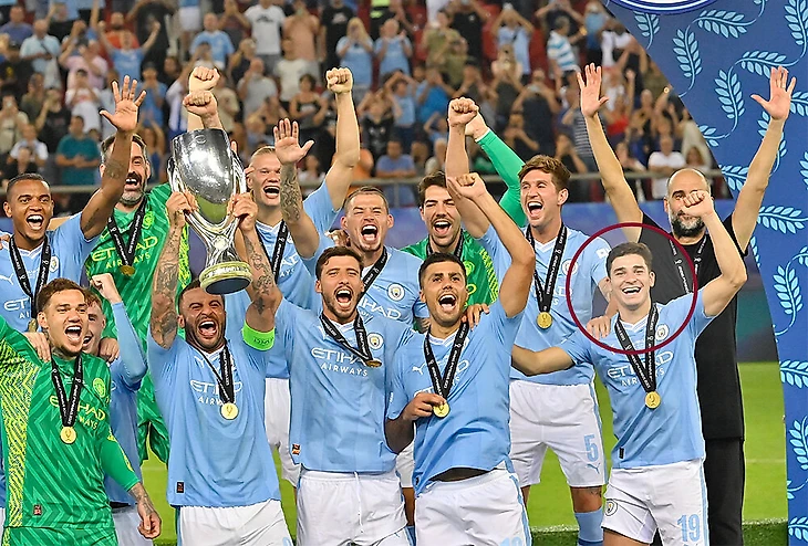 «Ман Сити» забрал Суперкубок Европы-2023, обыграли «Севилью» по пенальти. Аргентинский форвард Хулиан Альварес вышел на замену в концовке, на 85-й минуте, вместо одного из главных героев, Коула Палмера, забил второй удар в серии – и добавил новый трофей в свою мегаколлекцию.