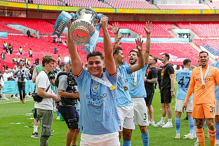 В 23 года Альварес взял теперь все самое главное, что есть в мировом футболе: в Южной Америке за «Ривер Плейт», в Европе с «Сити» и со сборной Аргентины. Конвейер все ускоряется: пять трофеев нападающий взял за последние 250 дней, это отрезок с финала чемпионата мира до сегодняшнего дня, в него как раз уложился требл – мощно!