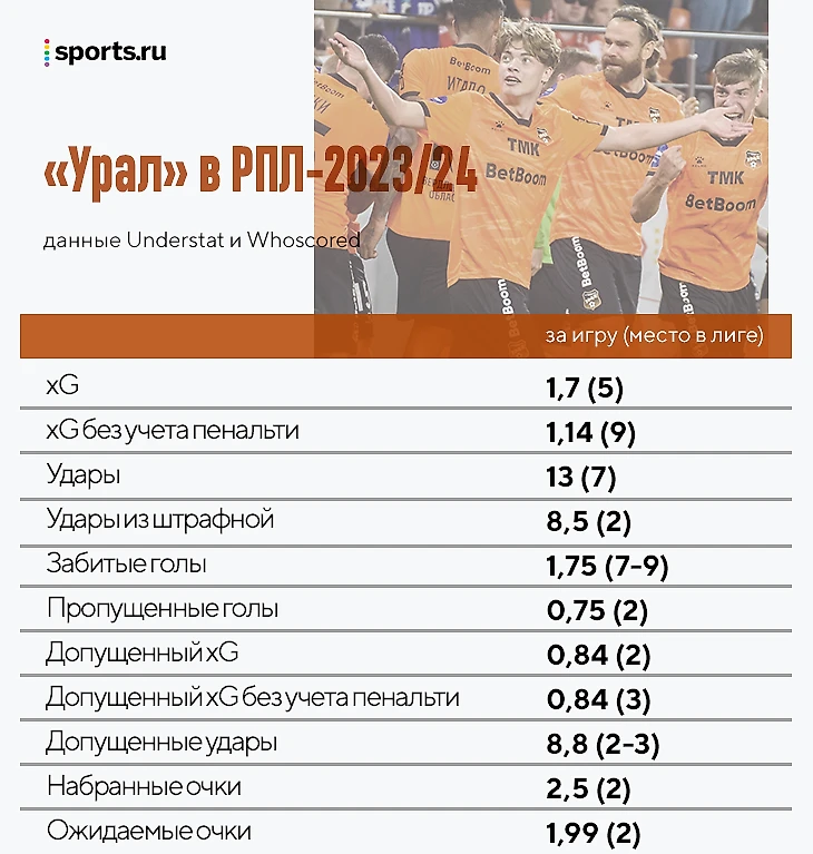 Даже при кадровых проблемах «Урал» играет организованно: команда успешно использовала против топов две схемы (3-4-3 и 4-4-2), при необходимости прессингует, адаптировала вбегания Аюпова в штрафную (по типу «Оренбурга»), в порядке на стандартах и надежна в обороне.