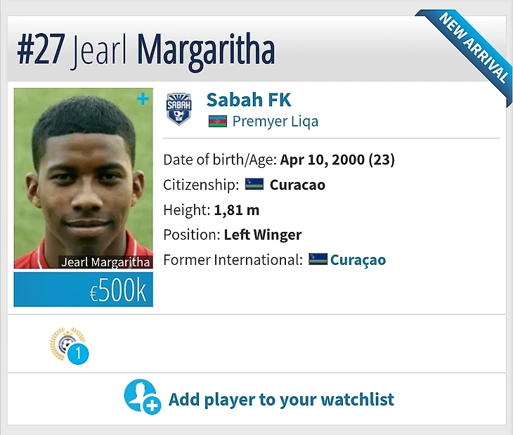 Джерл Маргарита тоже является одним из трансферов Сабаха в этом сезоне. Футболист играет на позиции левого вингера. Оценивается 500 тысяч евро. Футболист в прошлом сезоне в 28 матчах забил 12 голов и сделал 8 ассистов очень хорошая статистика для левого вингера.