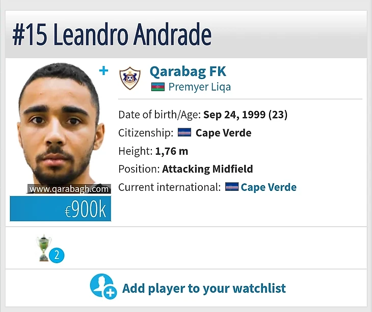 Леадро Андраде аттакующий полузащитник которому 23 года. Футболист такде выступает за сборную Кабо Верде. Оценивается 900 тысяч евро. В прошлом сезоне футболист в 35 матчах забил 8 голов и сделал 16 ассистов. Также были слухи об интересах Краснодара.