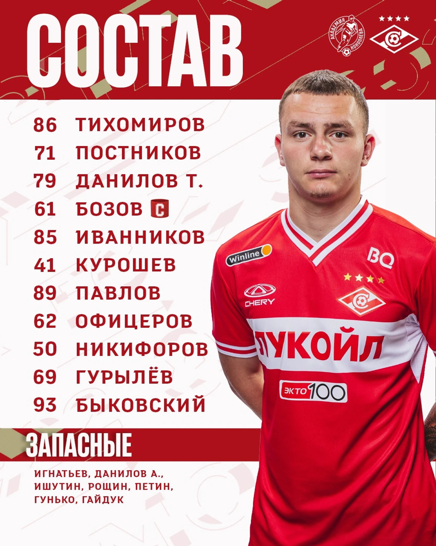 Запасные: Каратеев, Клименко, Матвеев.