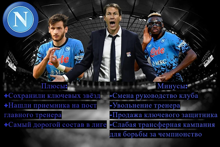 Главной потерей для неаполитанцев является конечно же уход главного тренера Лучано Спаллетти и спортивного директора Кристиано Джунтоли. Именно их совместная работа привела клуб к чемпионству в прошедшем сезоне.