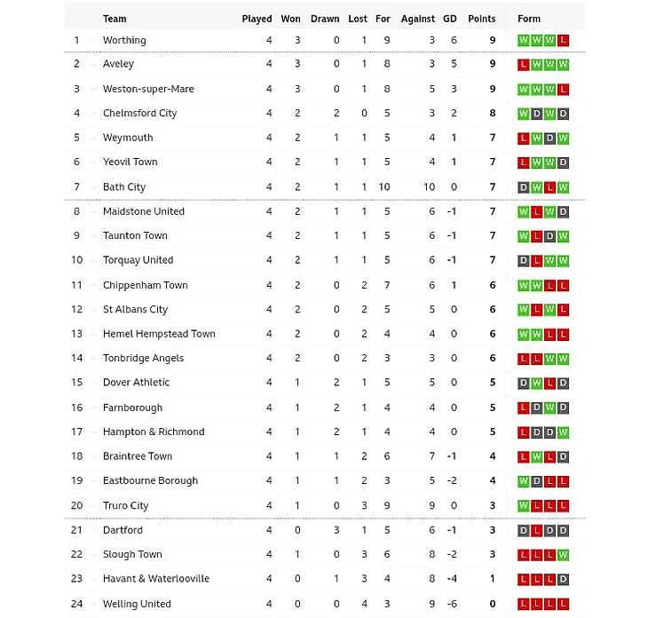 Брайтонцы и новички лондонцы стали первыми лидерами Южной Национальной Лиги. Совсем недавно крепкие представители 8-го дивизиона.