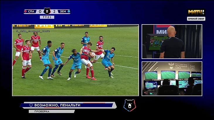 Карасев пошел смотреть момент. И поставил пенальти. Забавно, что сначала Карасев показал на точку у ворот «Спартака». Но вовремя исправил ошибку. Было забавно.