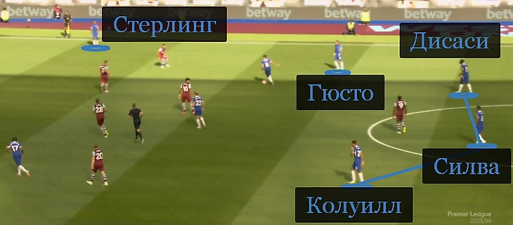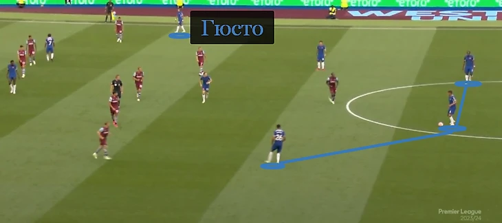 В рамках продвижения Гюсто забегал в более высокую позицию. За счет действий Мало «Челси» выстреивал пятерку в передней линии: Гюсто-Стерлинг-Николас Джексон-Карни Чуквуэмека-Бен Чилуэлл.
