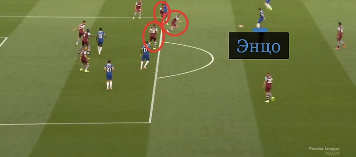Первый – за счет дыр в опорной зоне «Вест Хэма». Джеймсу Уорд-Проузу – и Томашу Соучеку, что смещался к британцу – приходилось опускаться в первую линию, чтобы команда меньше страдала от ситуации четыре-в-пять. Результаты – удары Конора Галлахера на 22-й и Чилуэлла – на 24-й минуте.