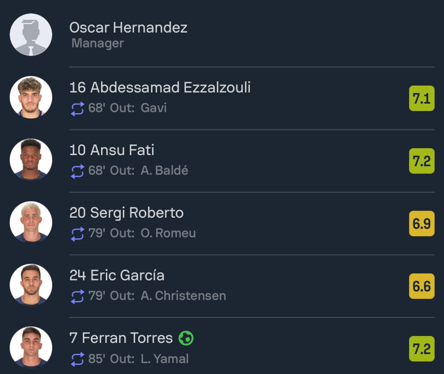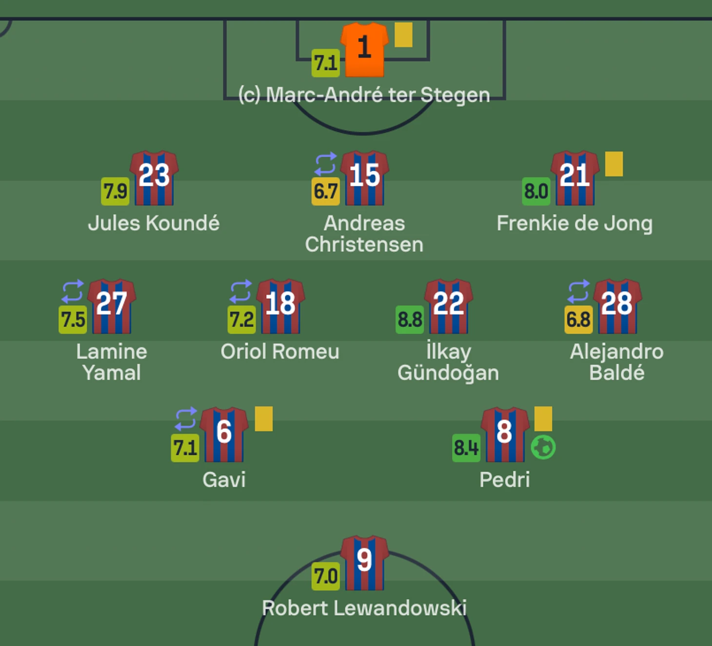 Портал Sofascore назвал Илкая Гюндогана лучшим игроком «Барселоны» в этом матче, оценив игру немца в 8,8 баллов. Отметим, что экс-полузащитник «Сити» отдал голевую передачу.