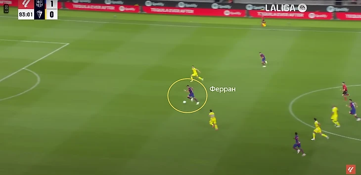 Дальше на поле появились Эрик Гарсия и Серджи Роберто. «Барса» перешла на 3-4-3, о чём мы смогли отчётливо услышать в паузе от Оскара Эрнандеса. В концовке вместо Ямала появился Ферран (на мой взгляд, эту замену стоило проводить раньше). Торрес даже успел забить. Тренерский штаб усилил игру заменами. Абде добавил свежести на фланге, а Фати дал динамику в центральной зоне.